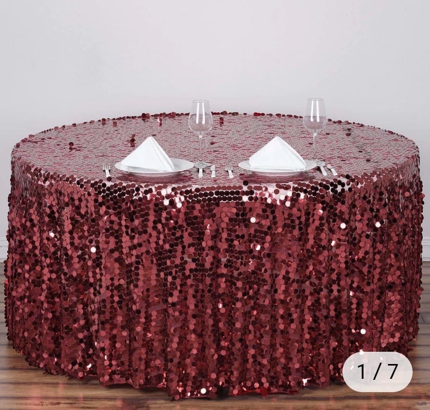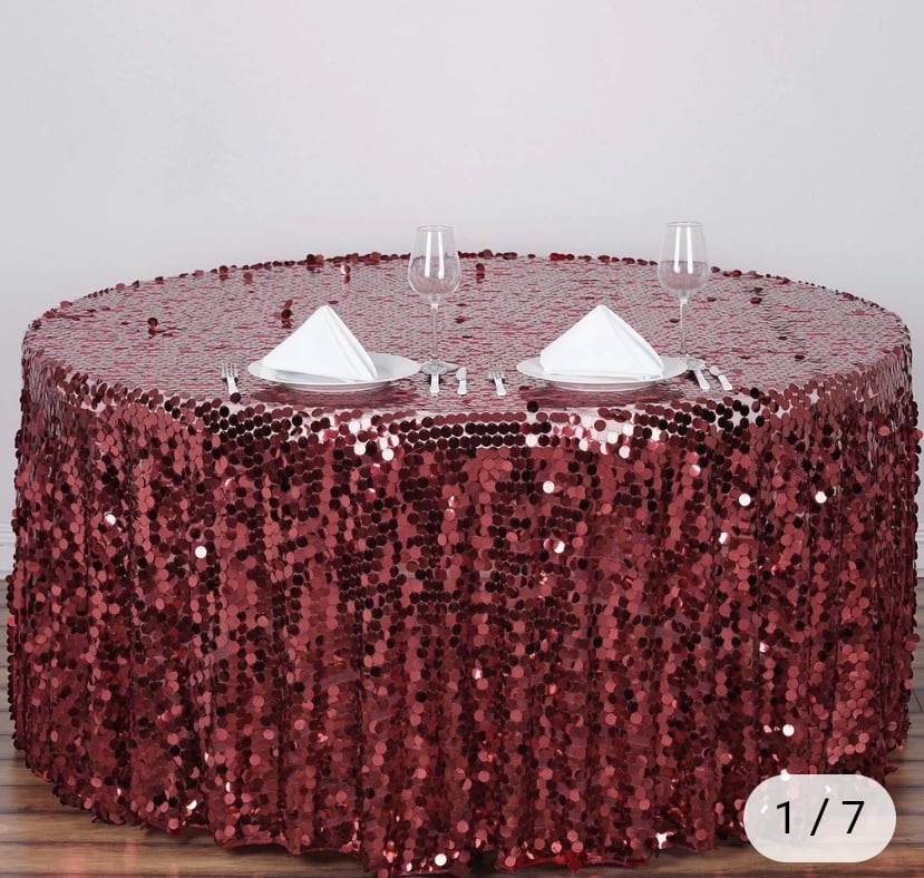120" big sequin round table cloth - Burgundy
