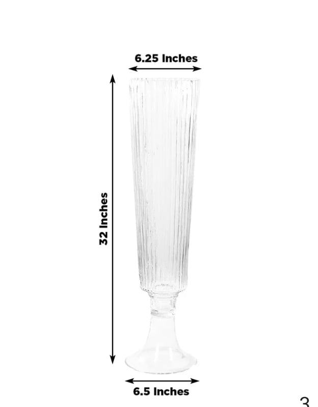 Glass Trumpet Vases Ribbed Design Clear - Flower Centerpieces for Events 32"