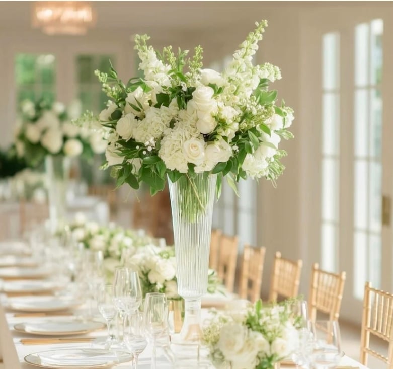 Glass Trumpet Vases Ribbed Design Clear - Durable Flower Centerpieces for Events