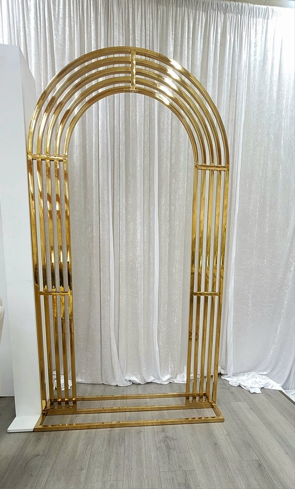 Gold stainless steel Arch frame 120 cm wide x 240 cm tall 120 cm wide x 220 cm tall Loveseat not included