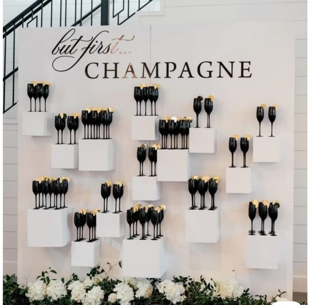 Luxury champagne wall for cocktail area / food area 8ft tall x 4ft wide $150 8ft tall x 8 ft wide $300 White wood Can be splits in the middle . For rent only Decal not included
