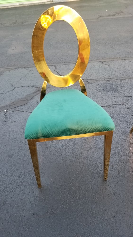 LUXURY STAINLESS STEEL CHAIR EMERALD GREEN AND GOLD Adult chair Stainless steel Emerald green cushions