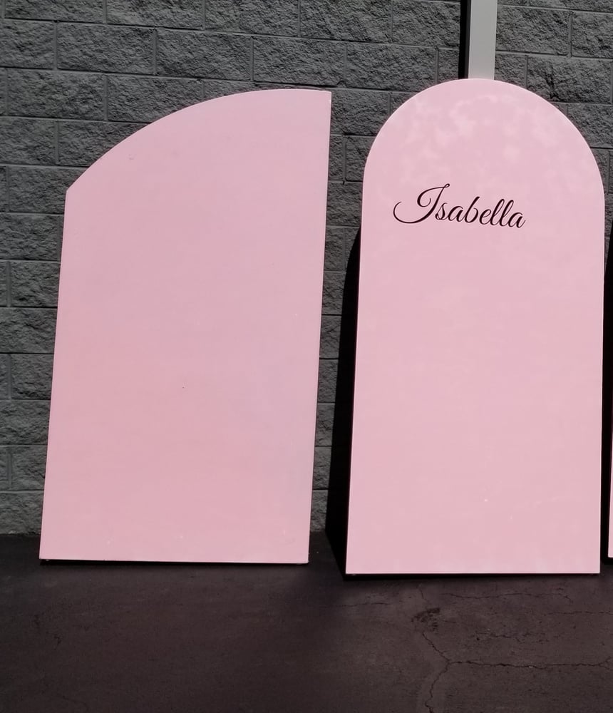 Middle panel 7ft tall x 3.5 ft wide Left side panel 6 ft tall x 3.5 ft wide Wood Pink or colors can be customized