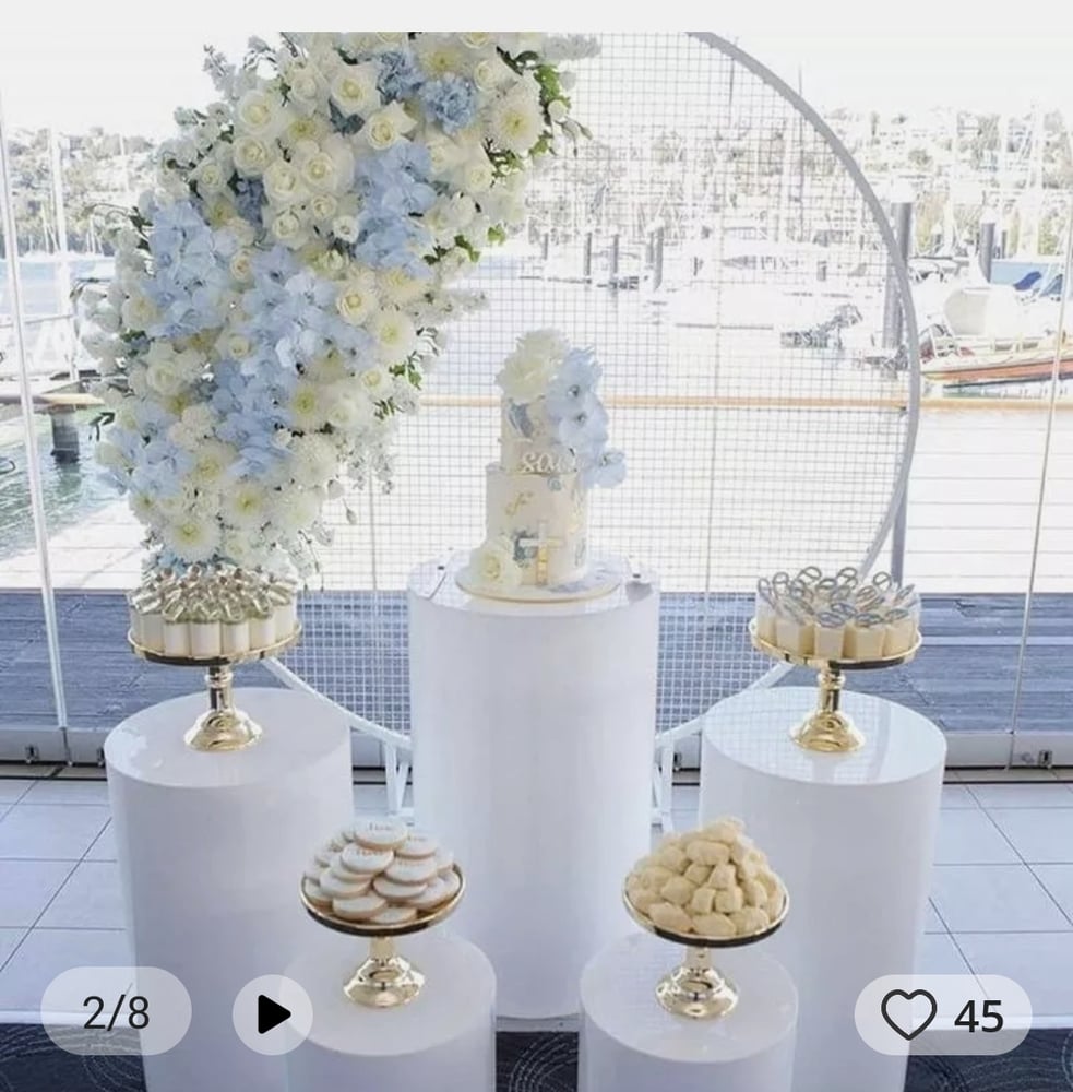 White pedestals/ Cake stand set included