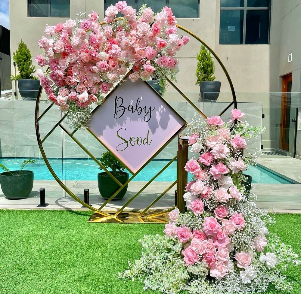 Shinny gold round metal backdrop