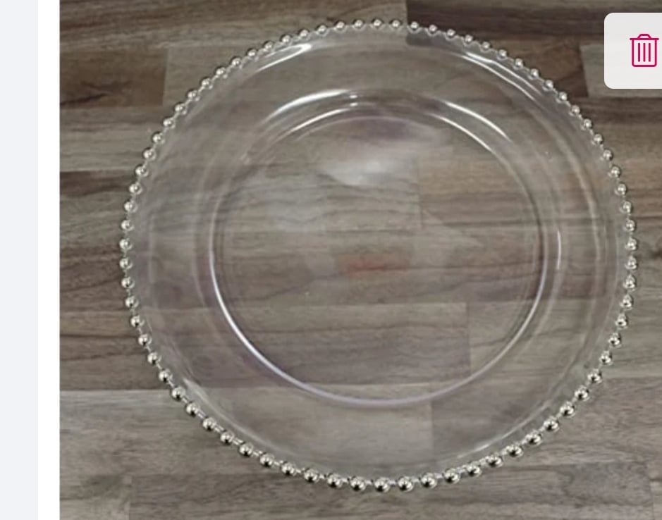 SILVER RIM BEADS CLEAR ACRYLIC CHARGER PLATES