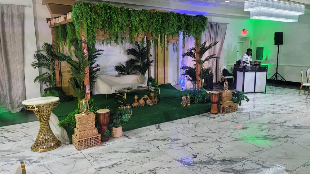 Stage design Traditional design Greenery Square canopy 8ft tall × 12 ft wide ( right to left ) × 8ft sides ( front to back)