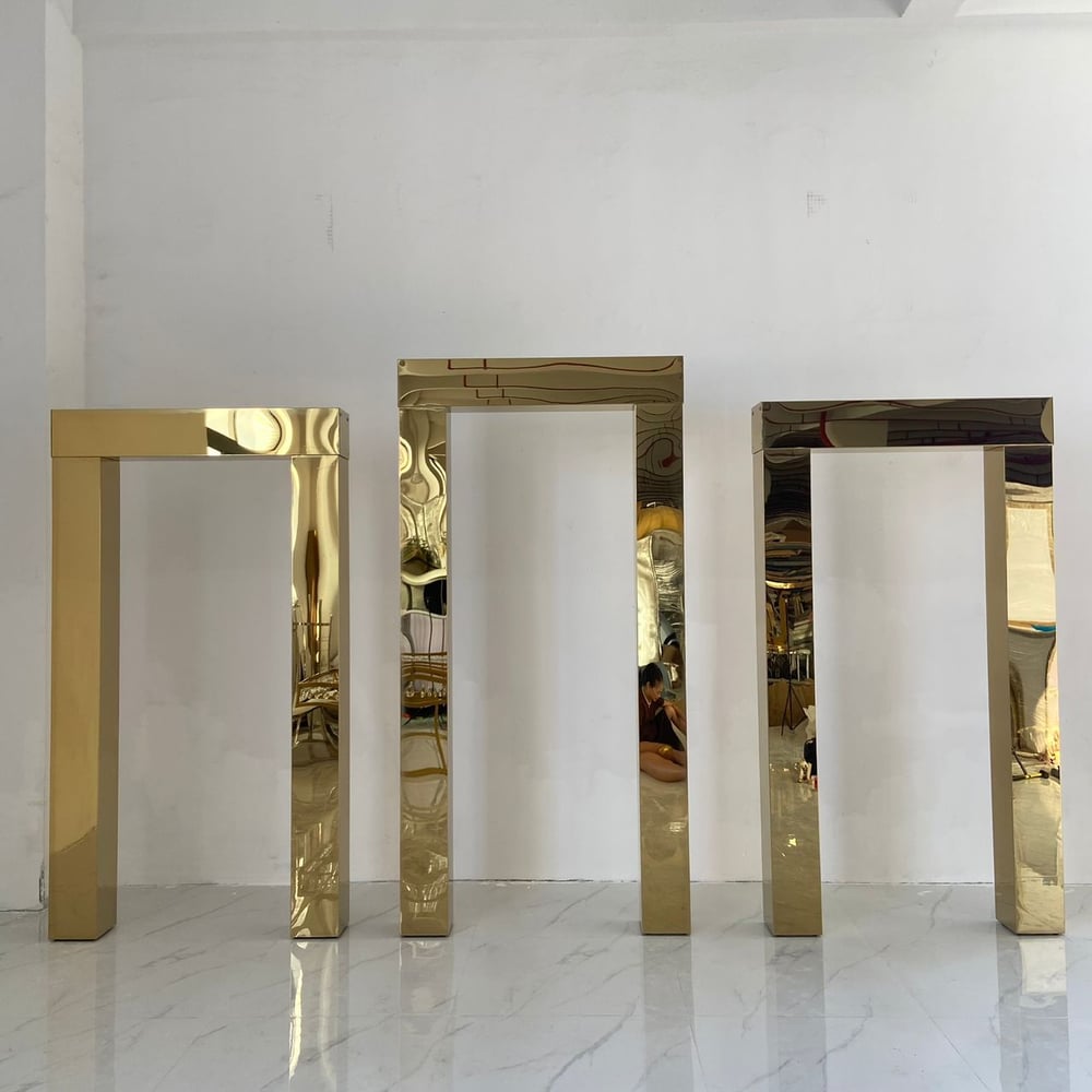 Stainless steel gold shinny backdrop 8 ft tall x 4 ft wide (2 available) 9 ft tall x 4 ft wide 8 ft tall x 8 ft wide ( 2 available) 9 ft tall x 8 ft wide
