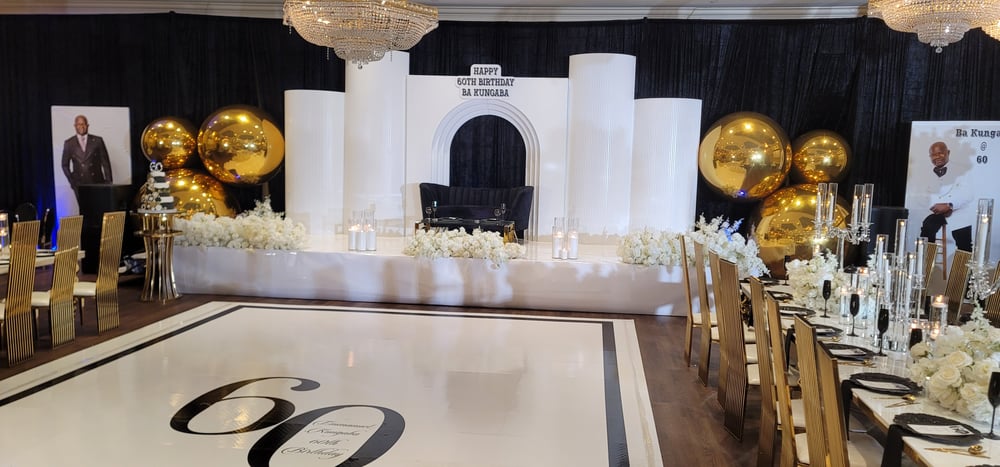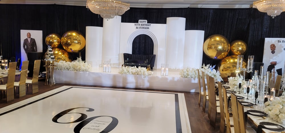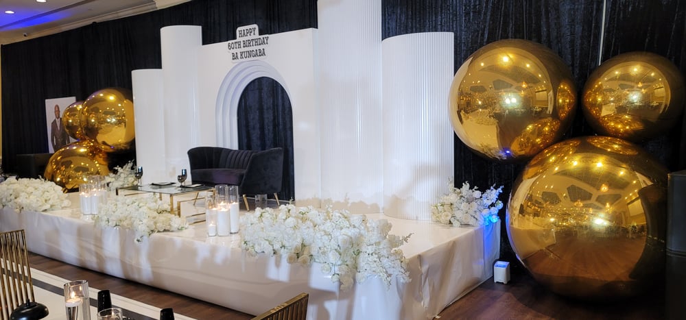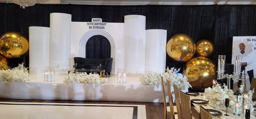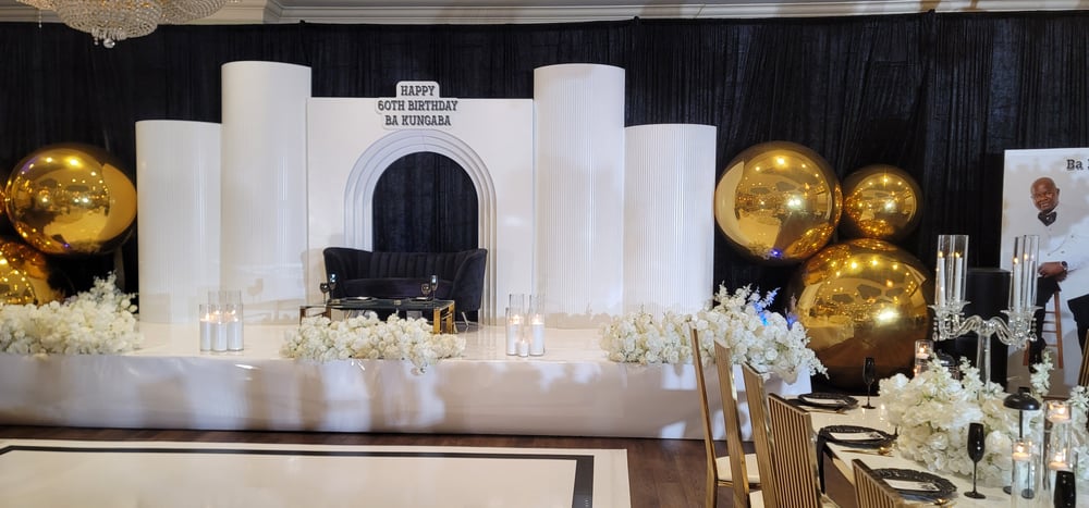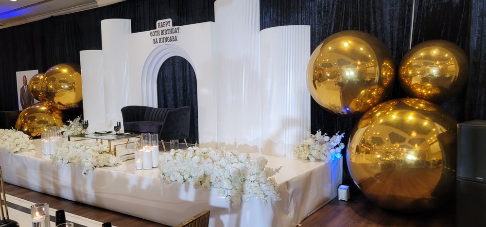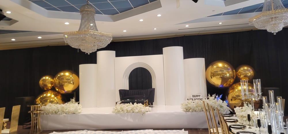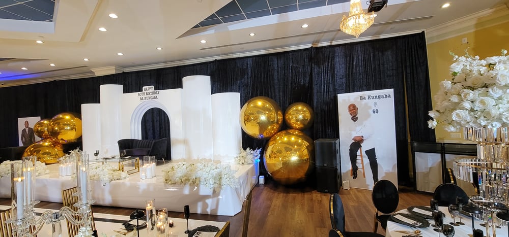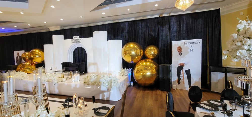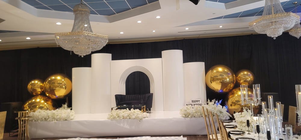 Backdrop design as picture with gold Balloons $2000
